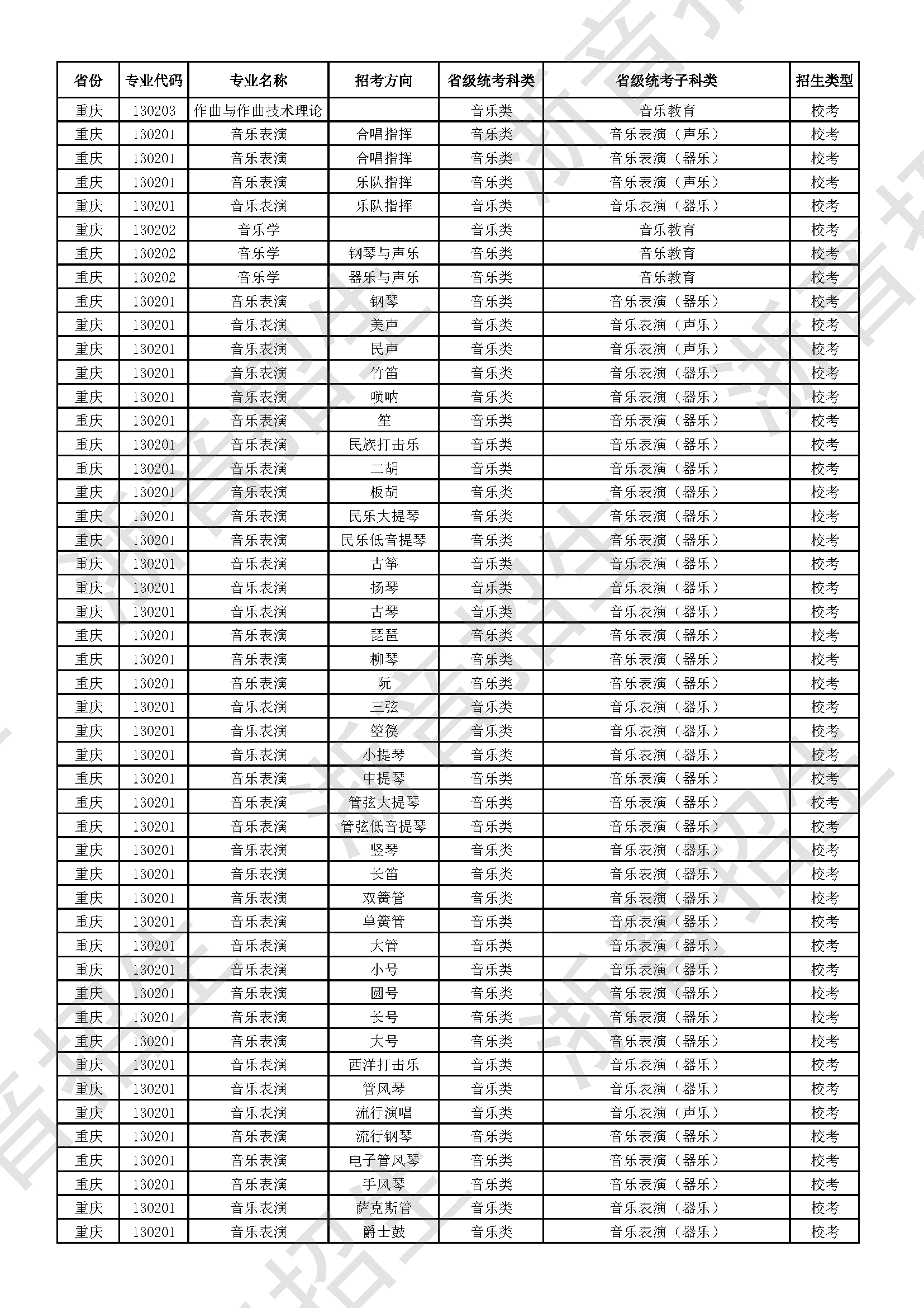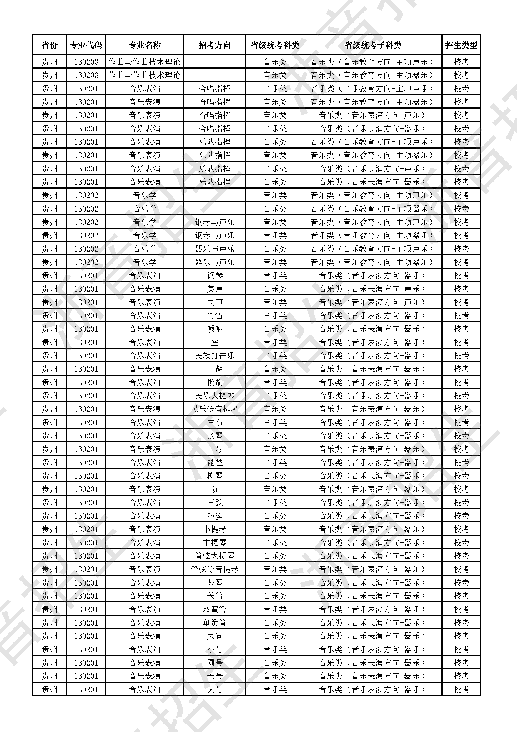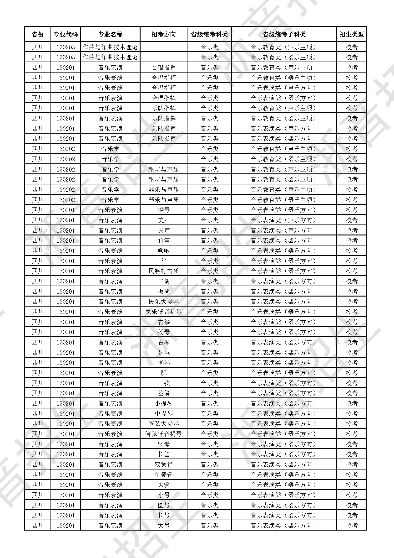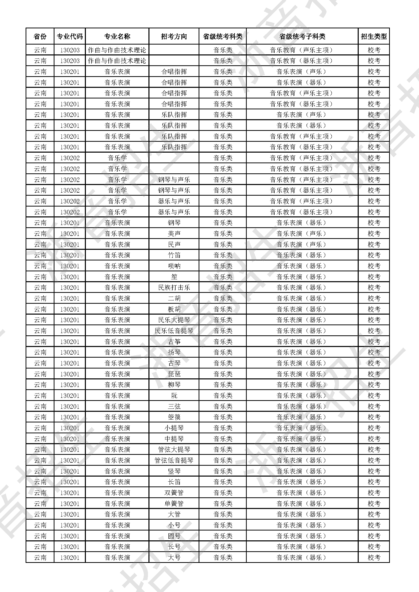 浙江音乐学院2026年本科艺术类招生专业与各省统考子科类对照表