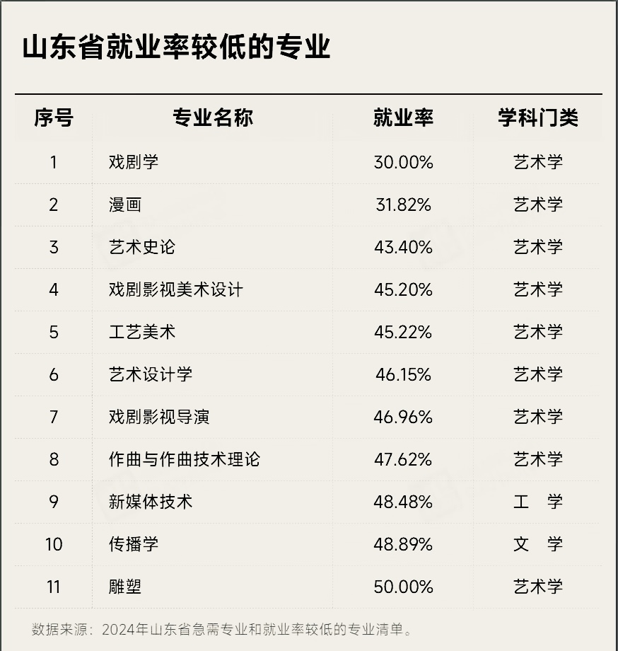 山东省就业率较低的专业,这些艺术类专业位列其中