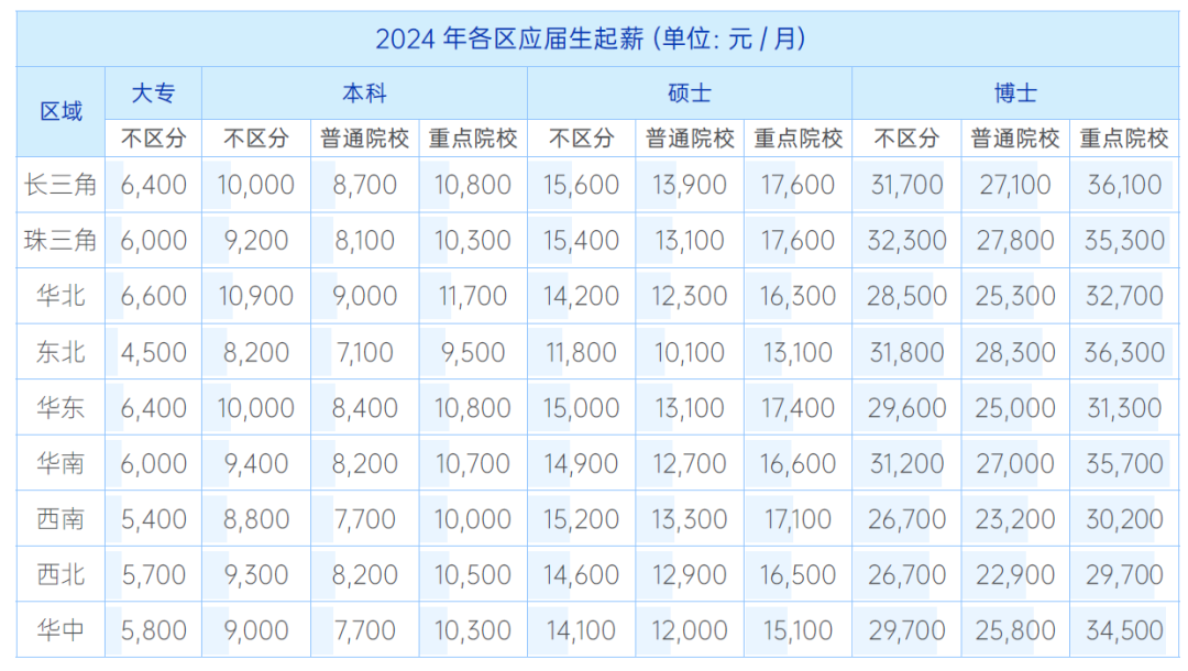 不同区域、不同学历高校毕业生薪酬待遇差异