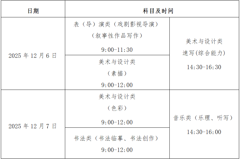 贵州省12月6-7日艺术类专业统考安排,不只有美术与设计类专业,还有表(导)演类、书法类、音乐类专业考试,恭祝各位艺考生联考大胜。