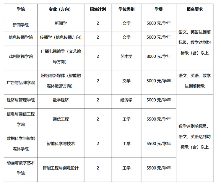 中国传媒大学2026年依据台湾地区大学入学考试学科能力测试成绩招收台湾高中毕业生