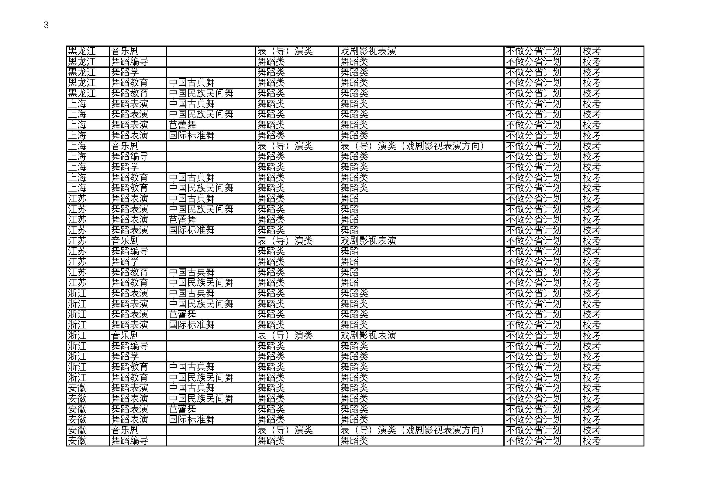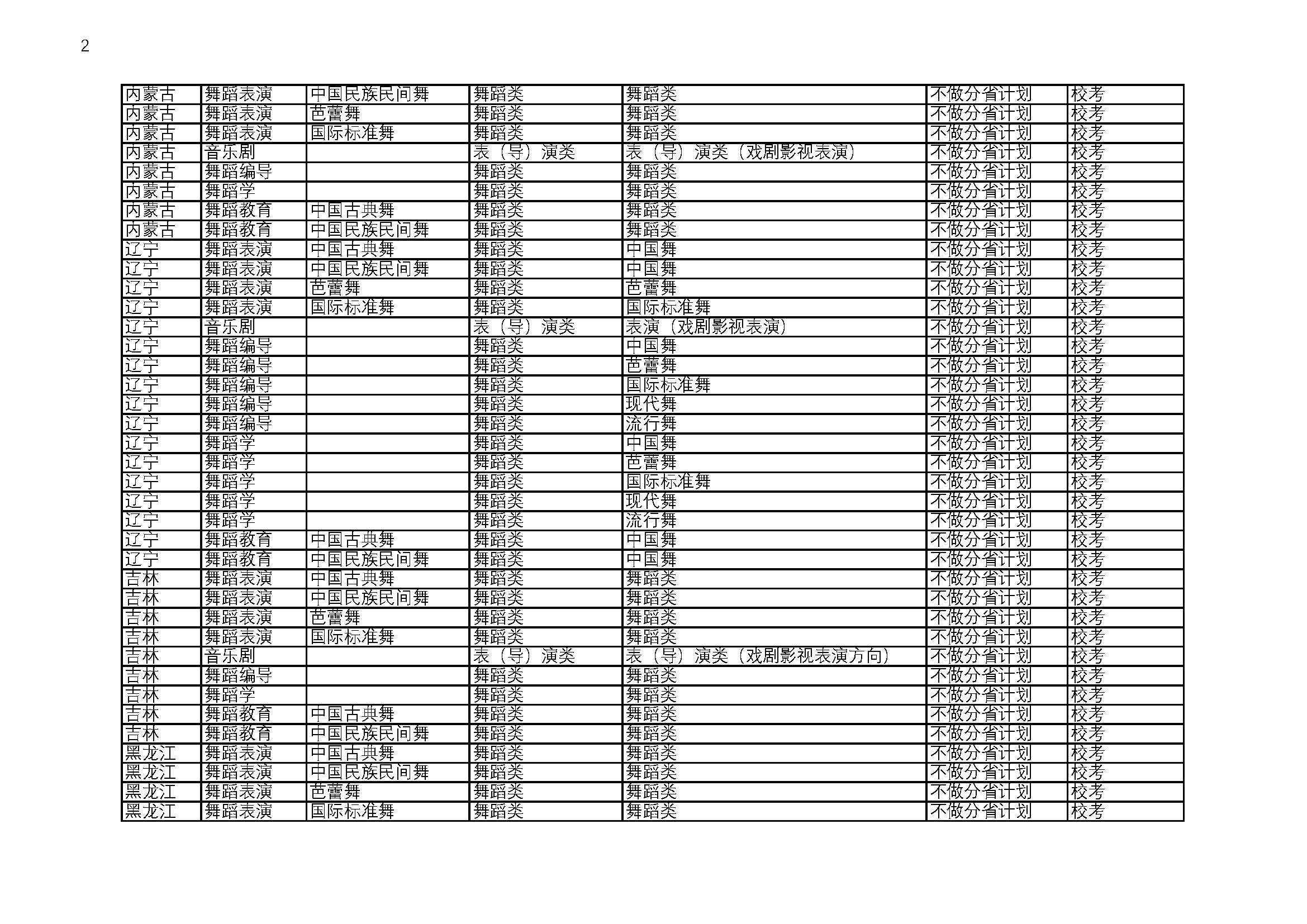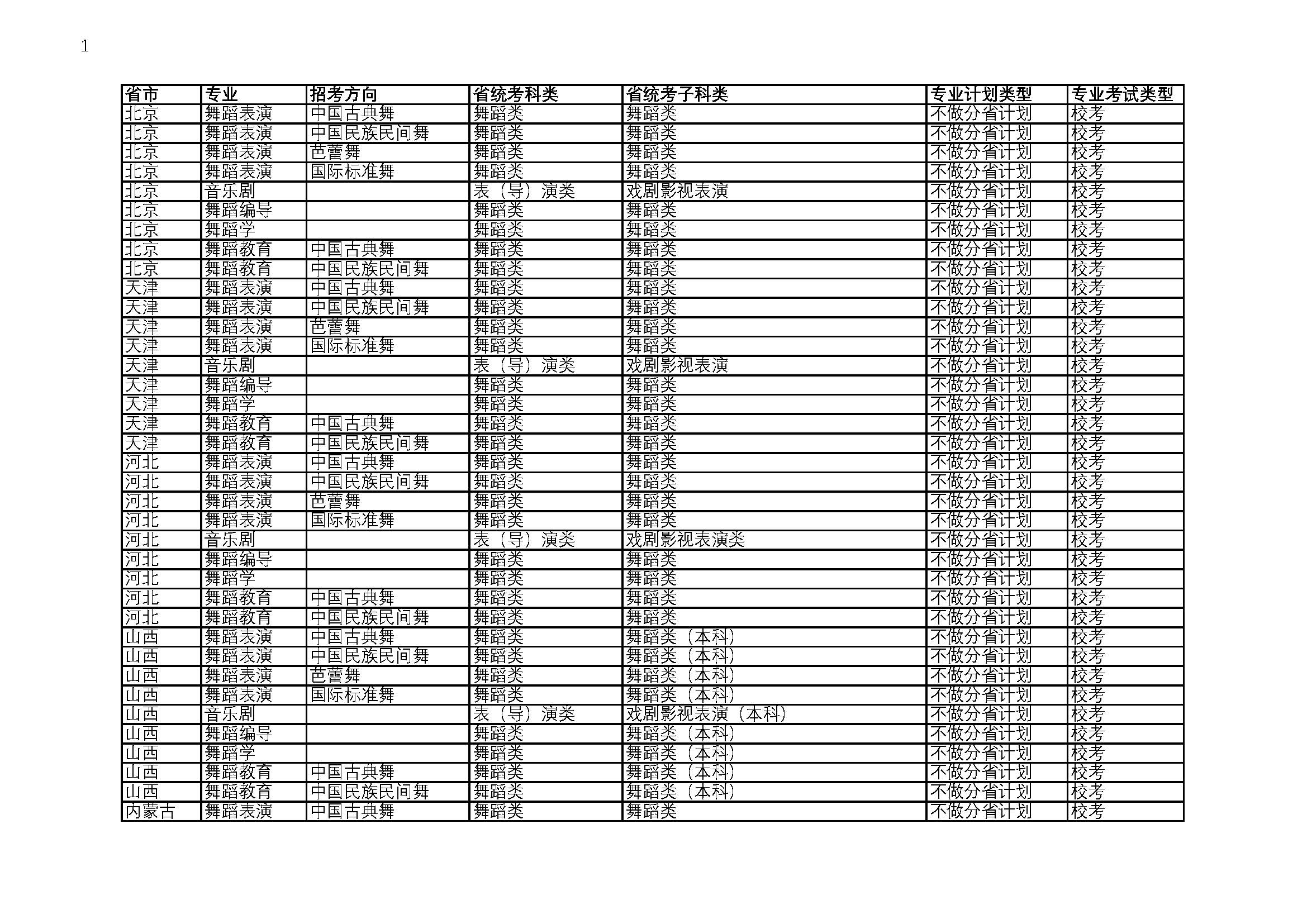 北京舞蹈学院2026校考招生专业与省统考要求对照表