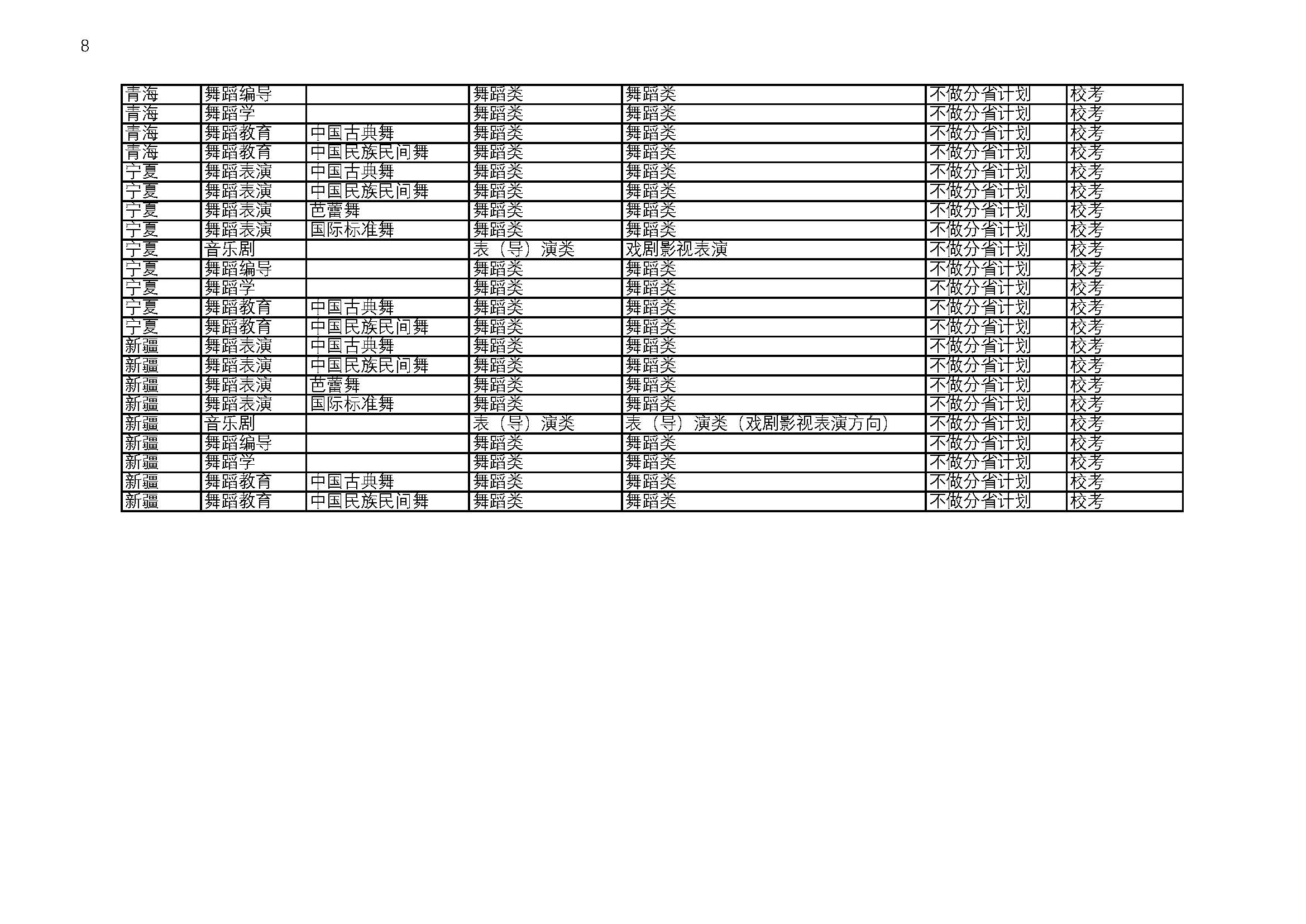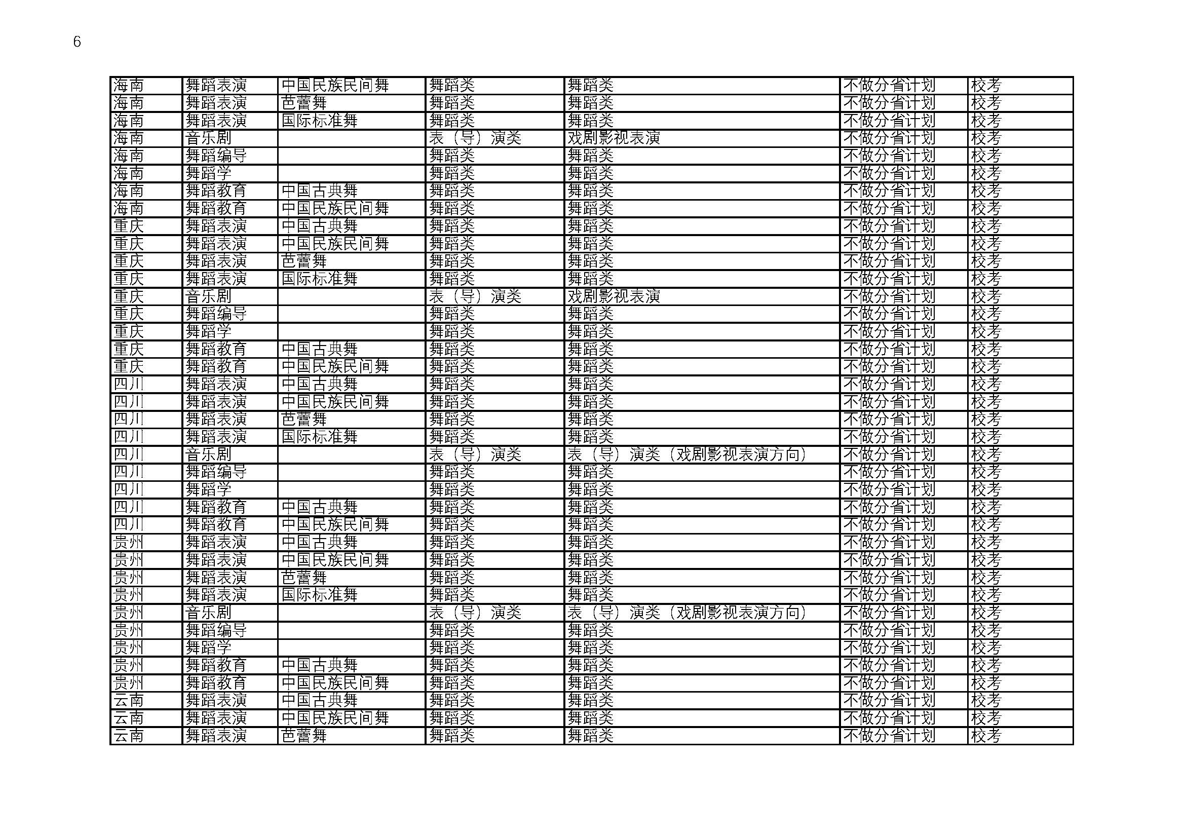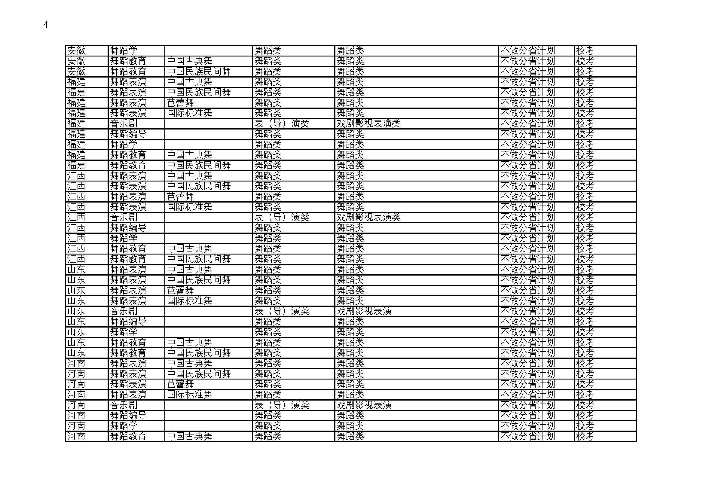 北京舞蹈学院2026校考招生专业与省统考要求对照表