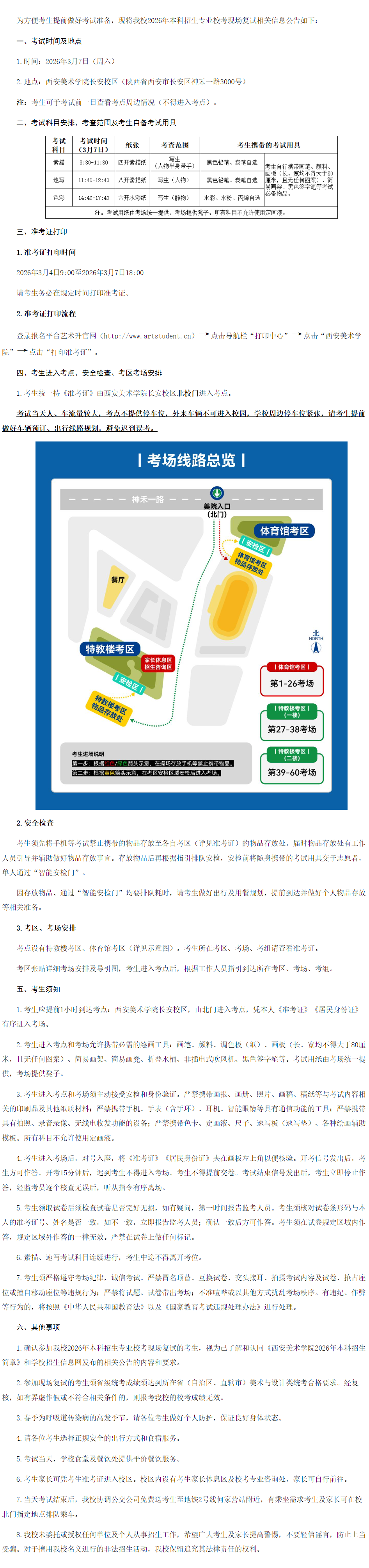 西安美术学院2026年本科招生专业校考现场复试考前公告