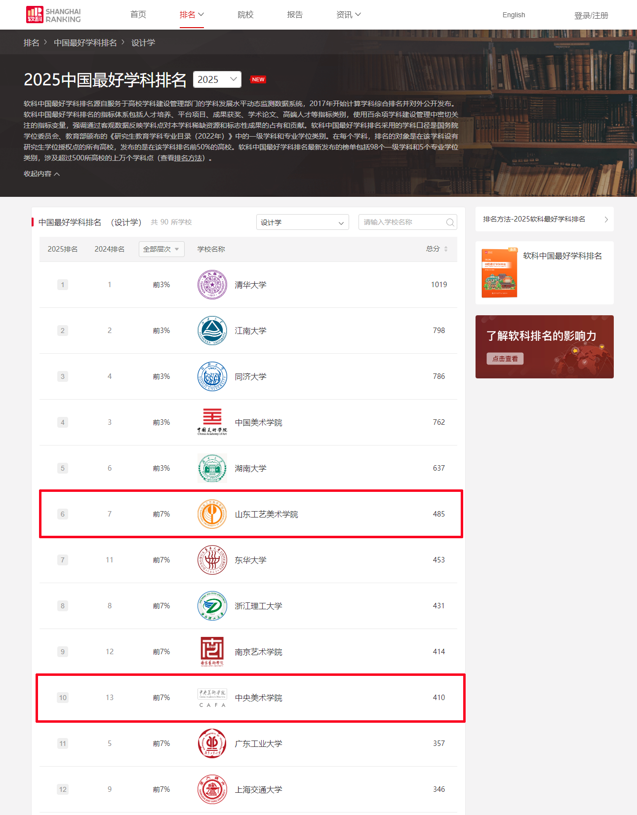大家看软科的所谓中国最好学科排名,在设计学学科领域,中央美术学院在九年的排行榜中,仅有一年超过了山东工艺美术学院,其余八年一直不如山工美,美术生们,软科喊你们报山工美呢?