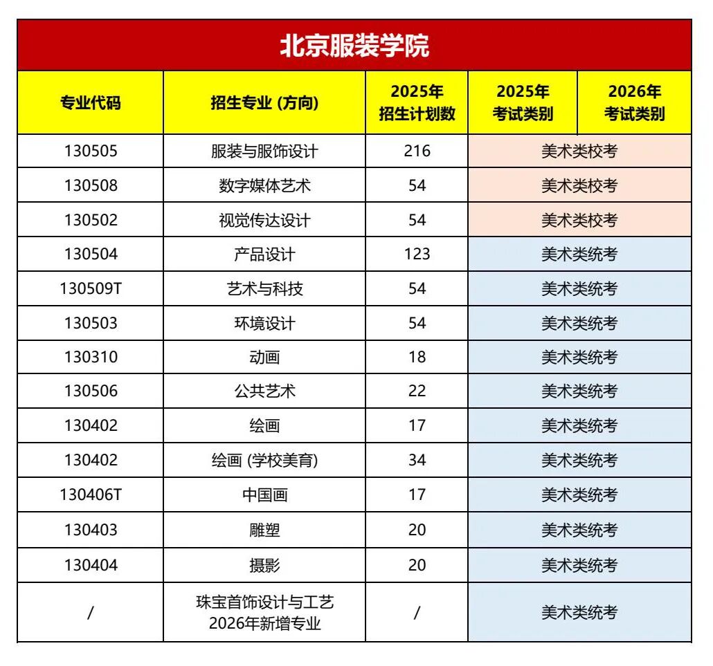 北京服装学院2025-2026校考专业对比统计分析