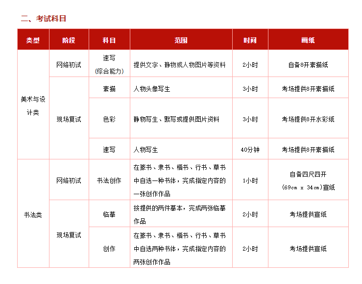 1.考试目的:考查考生的艺术与人文素养能力、观察和表达能力、造型能力等。