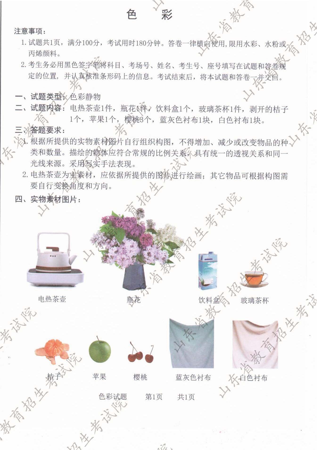 山东2026美术与设计类专业统考色彩试题