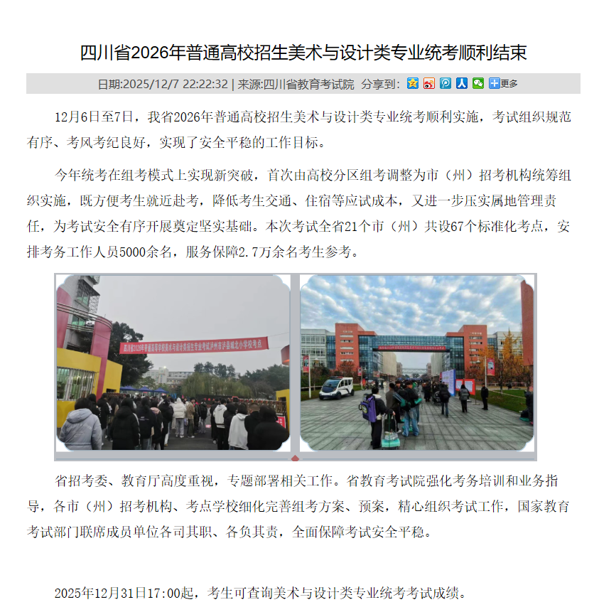 四川2026年美术联考总参考人数仅剩下2.7万人,较去年下降0.3万余人,降幅达到10%,近四年人数下降了1.1万。