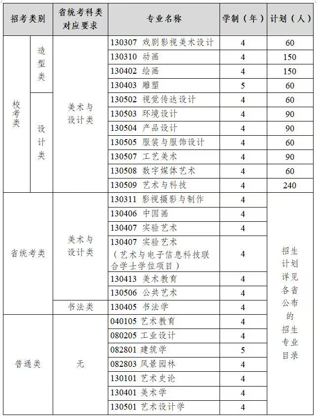 校考类专业不安排分省计划,按以下原则全国排名录取:校考类专业均文理(或历史类和物理类)兼招,考生符合报考条件,美术与设计类省统考成绩符合所在省份公布的合格要求,对应类别校考合格,高考文化成绩(不含政策性加分)达到所在省份普通类专业本科批次相应科类录取控制分数线,依据考生志愿,按校考专业综合分从高到低录取和安排专业,专业综合分计算方法同前。