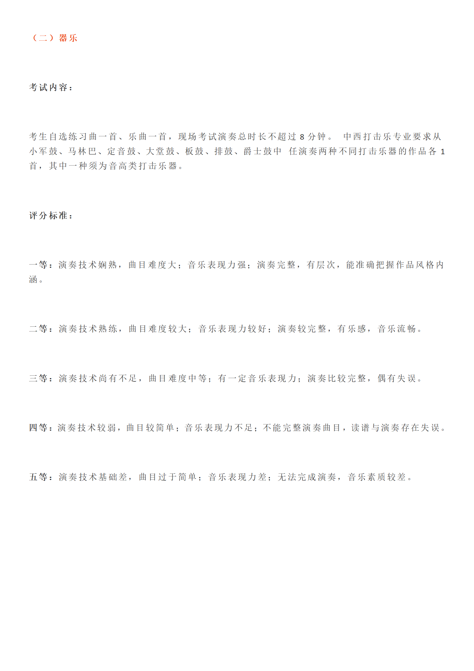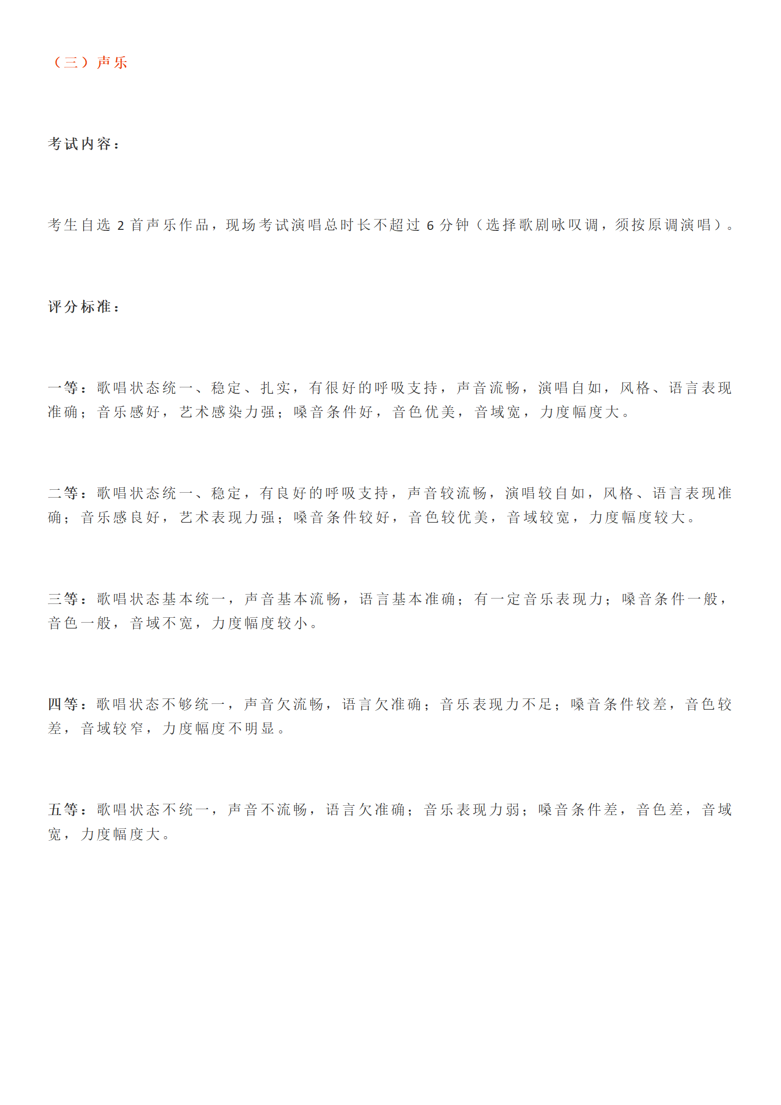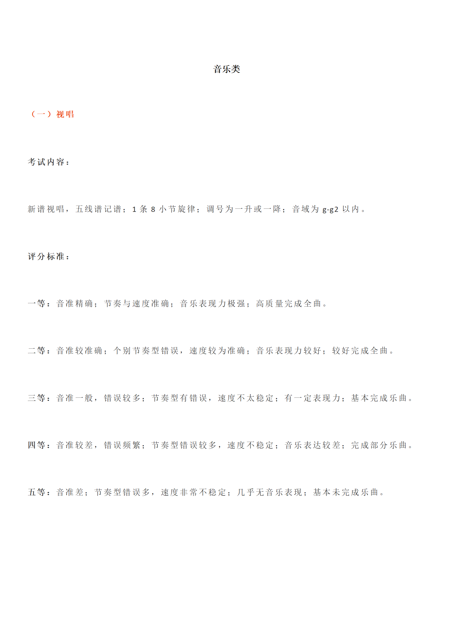 音乐类专业统考评分标准