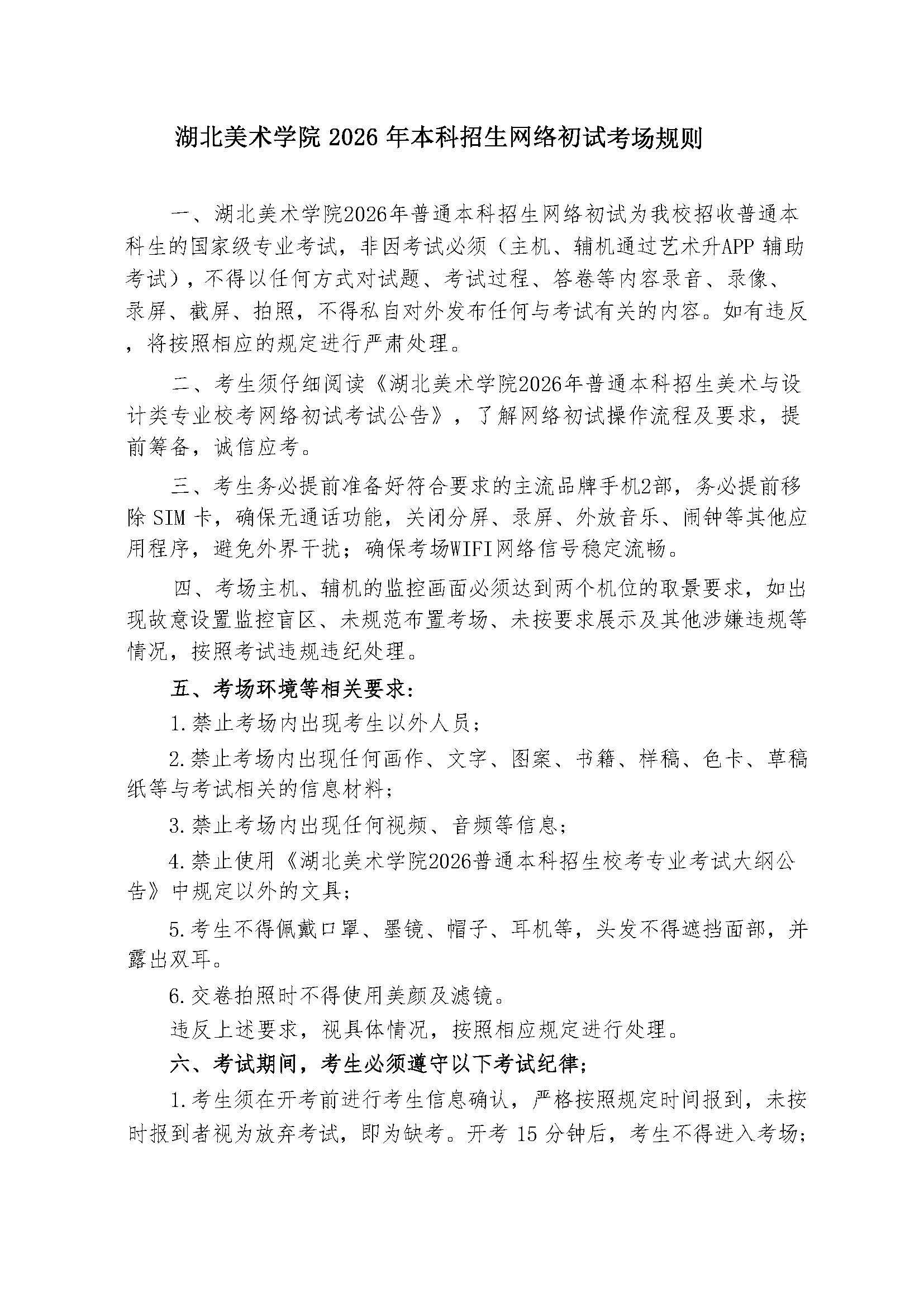 下一篇: 湖北美术学院2026年普通本科招生美术与设计类专业校考网络初试考试公告 >
