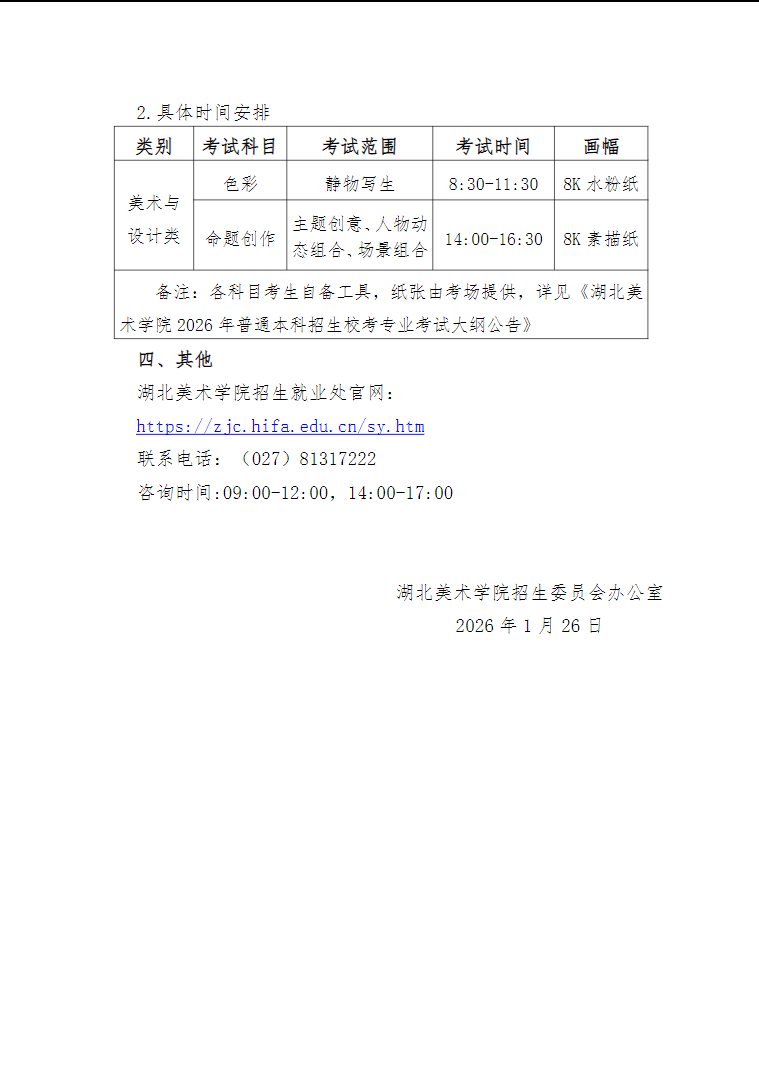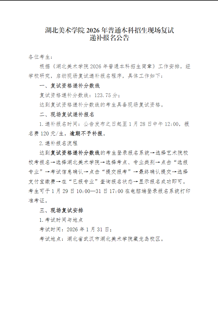 湖北美术学院2026年普通本科招生现场复试递补报名公告