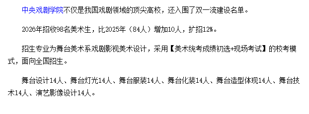 中央戏剧学院2026扩招美术生